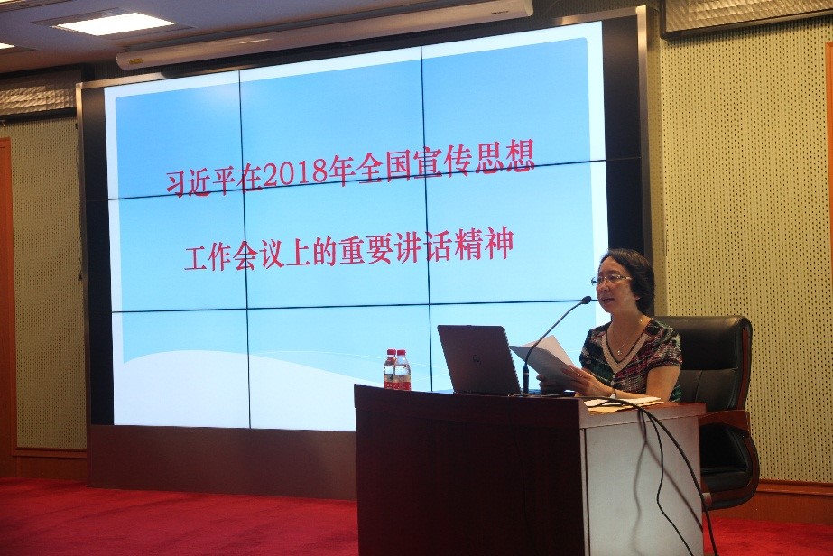 贾淑英书记带领大家学习了习近平总书记在全国宣传思想工作会议上的重要讲话精神,并要求各支部要深刻领会、全面贯彻习近平总书记重要讲话精神,始终坚持党性原则,以高度的政治敏锐性做好意识形态工作;要紧密结合研究所实际,以讲话精神指导工作,重点做好思政工作,创新工作方式方法,切实履行好宣传思想工作围绕中心和服务大局的基本职责。