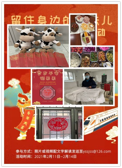 特别是与我所协和Technic技术社共同开展的“留住身边的年味儿—拍照纪念2021新年”的活动,旨在号召大家用相机记录下这个不一样的春节,配上解读,留住最具年味儿的瞬间。回家过年的同学,可以通过照片分享,让大家感受到各地不同的习俗和氛围。而选择留校的同学,则以“实验室型跨年”、“宿舍型跨年”、“自习室型跨年”、“跨年包裹”为主题,寻找与往年不一样的过年乐趣。不管身在何处,2021年新开篇,不忘初心,带上那颗永不言败的心继续前进,追逐梦想。