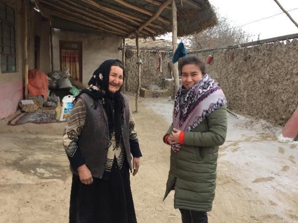 玛尔哈巴老师的亲戚是一位老太太,老太太身体不太好,但仍会亲自为我们准备小吃,像和女儿唠叨一样拉着玛尔哈巴老师的手聊着家里最近发生的各种事情,临走之前依依不舍的给玛尔哈巴老师戴上一条丝巾。