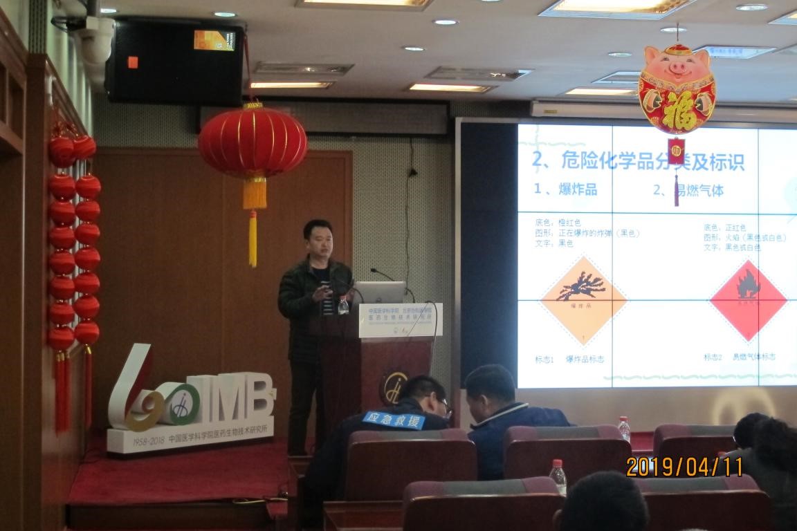 为进一步加强药生所安全管理,提高广大教职工和学生的安全意识,普及消防应急知识,严格危险化学品管理,强化病原微生物操作规范,将总体国家安全观和安全生产责任制落实落细,药生所于2019年4月11日上午对研究生导师和各处室安全员进行了安全教育培训,研究生导师、安全员、科教处、保卫处和行政处全体管理人员、部分教职工和学生共计130余人参加培训。