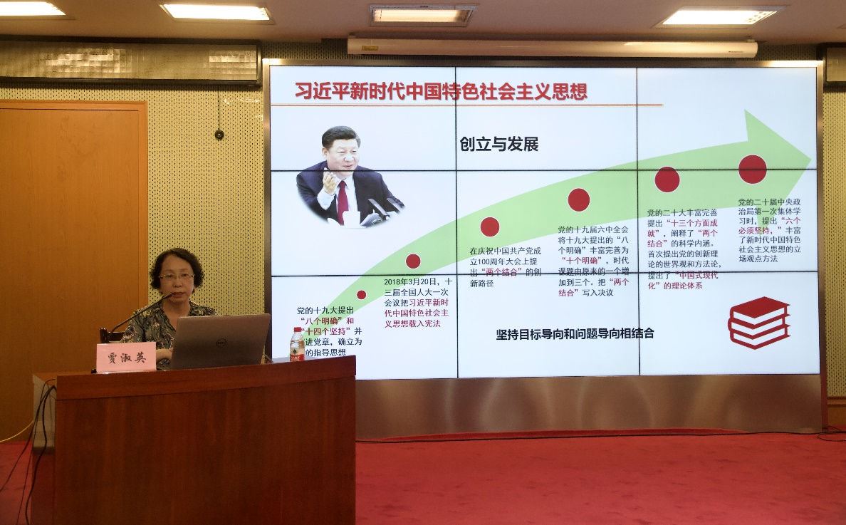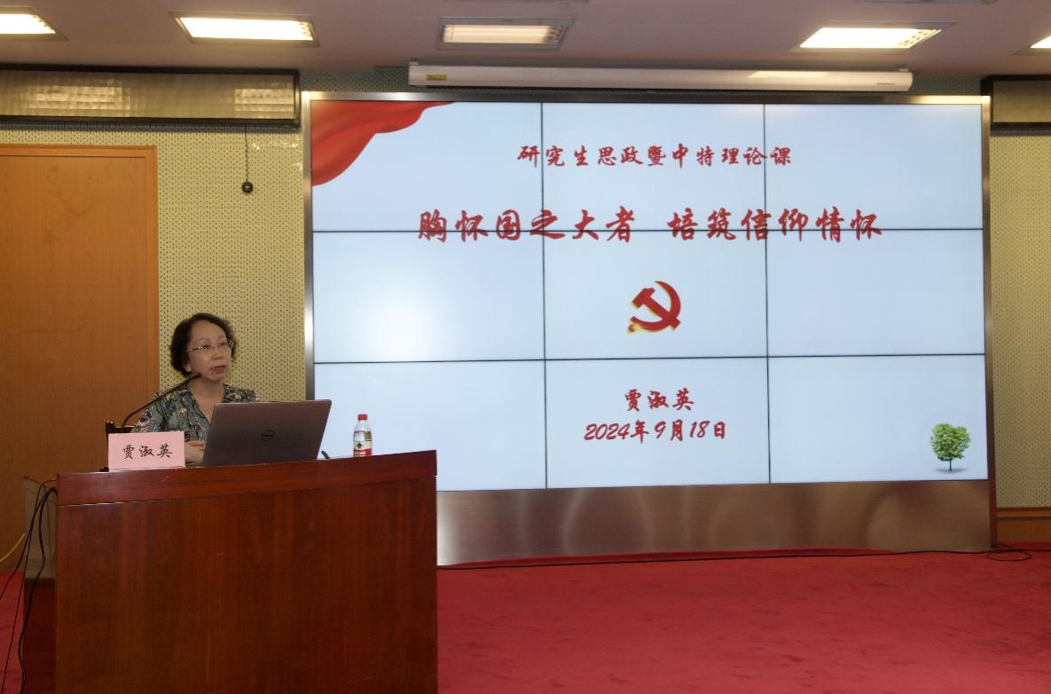 9月18日上午,药生所党委书记贾淑英为2024级全体新入学研究生讲授思政课,全体新入所职工一同参加学习。