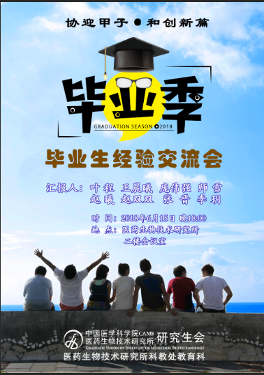 为了进一步帮助学生熟悉国家就业政策,了解社会职业信息,科学定位个人发展方向,树立正确的择业观和就业观。2018年6月15日,在科教处教育科的大力支持和指导下,医药生物技术研究所研究生会成功举办了“协迎甲子·和创新篇”-毕业生经验交流会。