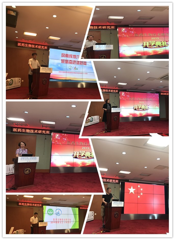 2019年8月28日上午九点,科教处教育科在二楼会议室成功举办了“医药生物技术研究所2019年开学典礼和新生入所教育”。大会在庄严的国歌声中开幕,邵荣光所长、贾淑英书记、李卓荣副所长、孙波副书记以及科教处处长盛丰年、微生物化学室主任孙承航、制剂室主任王玉成、病毒室副主任李玉环、保卫处副处长刘陆峰和后勤服务公司负责人于雷老师出席了本次会议。